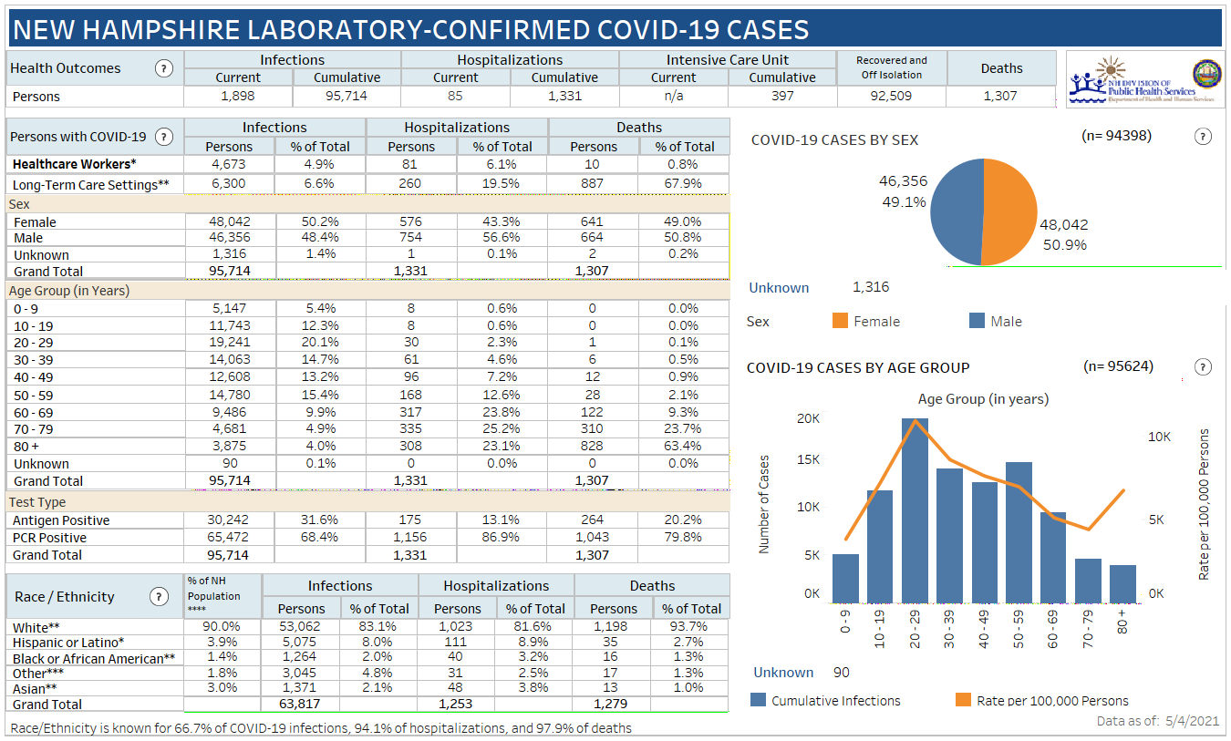ย New Hampshire 2019 Novel Coronavirus (COVID-19) Summary Report (updated May 4, 2021, 9:00 AM)