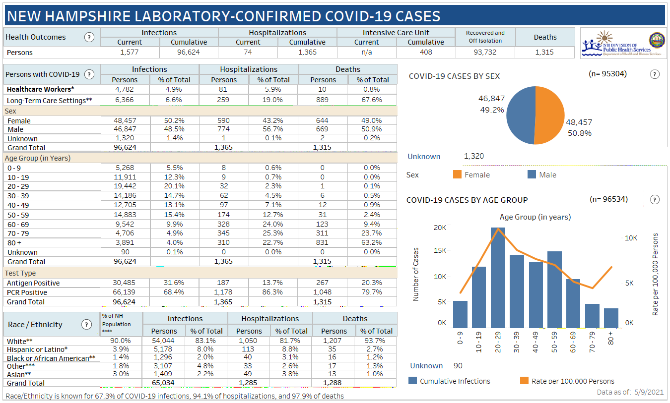 New Hampshire 2019 Novel Coronavirus (COVID-19) Summary Report (updated May 9, 2021, 9 a.m.)