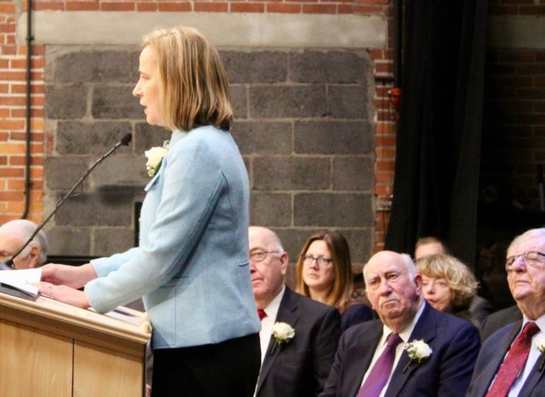 Mayor Craig delivers her remarks during the Jan. 7 inaugural at The Rex Theatre.
