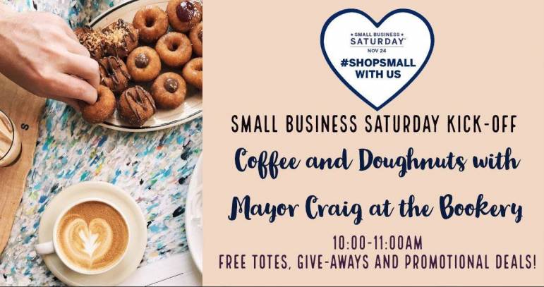 MANCHESTER, NH โย ย Intown Manchester Management Inc. partnered with the Greater Manchester Chamber of Commerce for Small Business Saturday, brings to you Coffee and Doughnuts with Mayor Craig at the Bookery Manchester on Saturday, November 24ย , 2018 at 10 a.m. Participants are welcome to visit this station to learn about the deals and promotions happening Downtown, arrange a ride with the Peddl bike to easily get to their next stop or to chat with Mayor Joyce Craig about small businesses downtown.