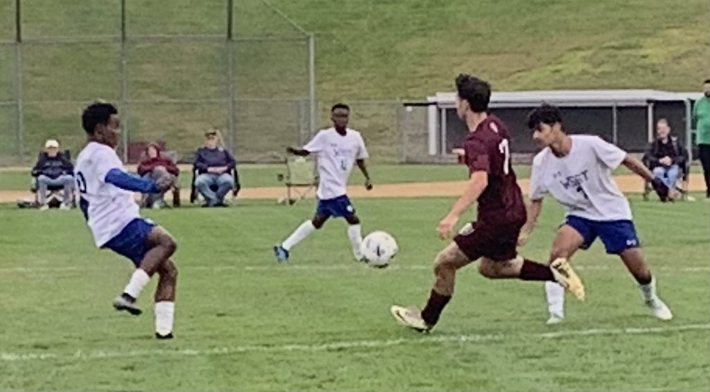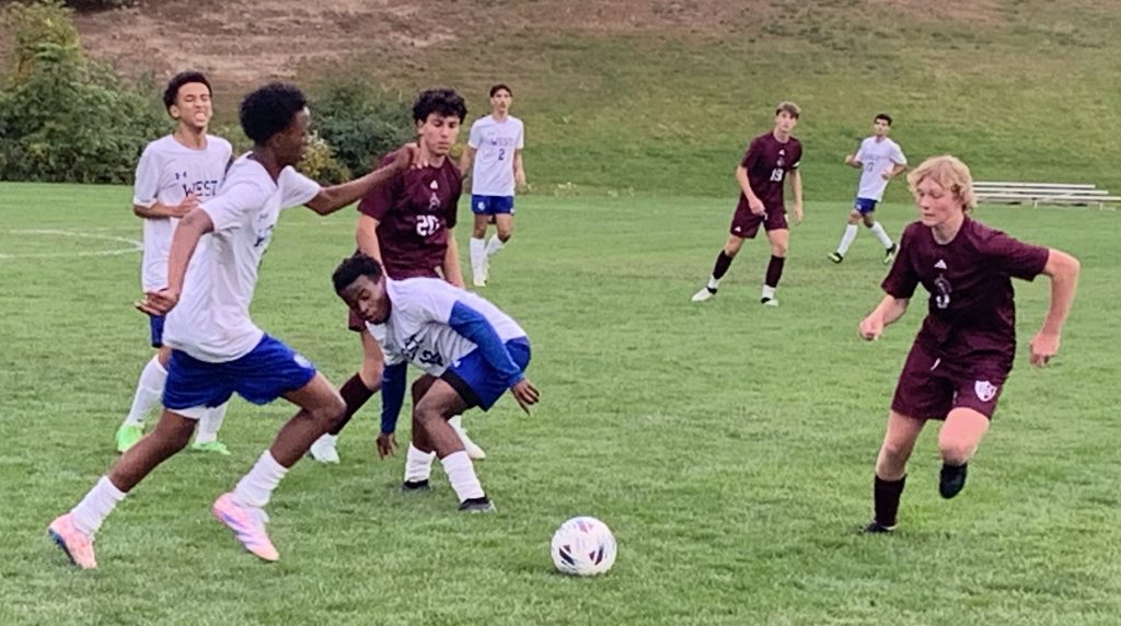 West continued its aggressive play in the second half, with its mids pushing into the attack zone and its backs moving up, as well, to try and keep Derryfield pinned down.