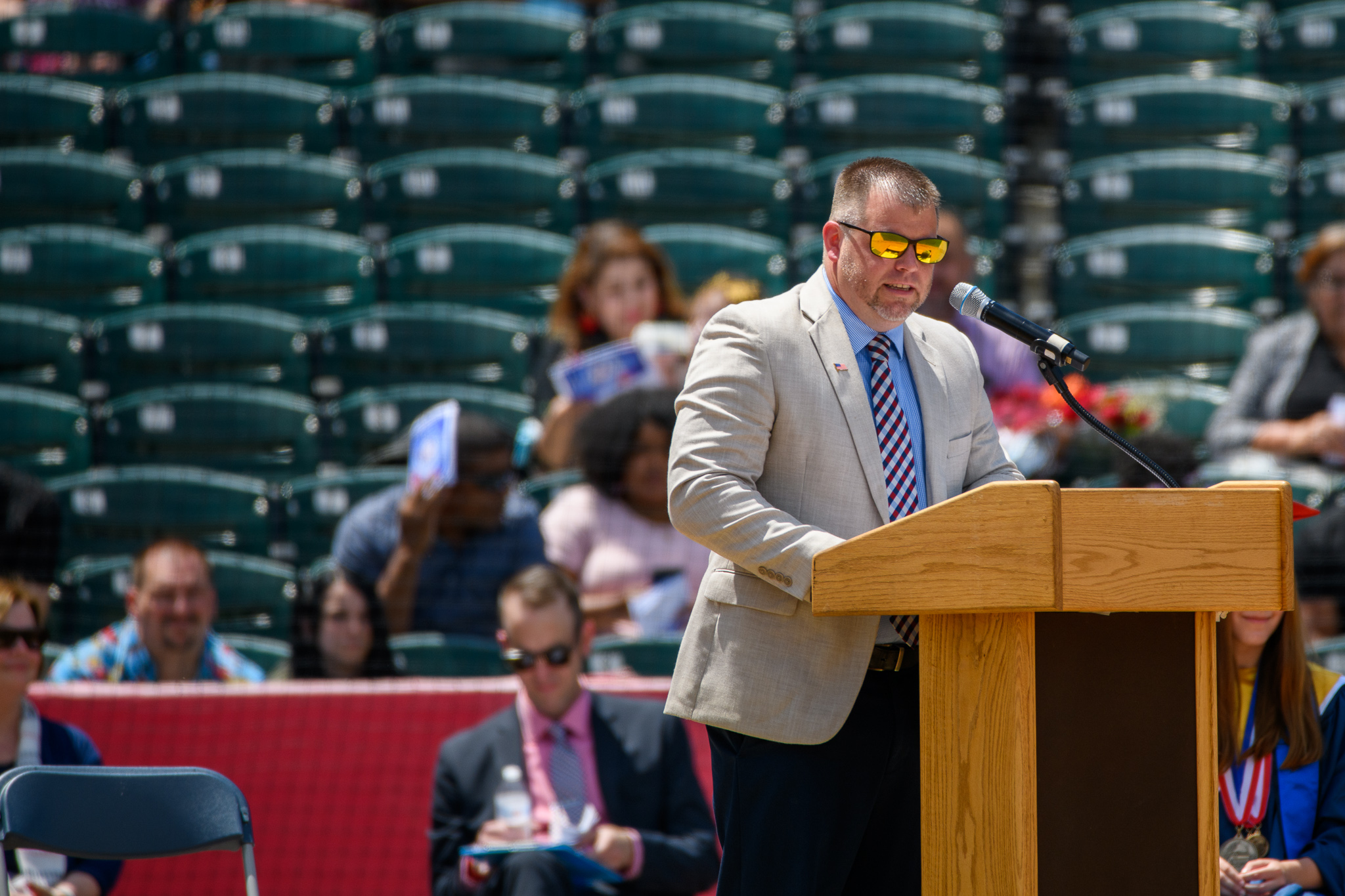 After first-year principal Shaun St. Onge introduced the platform guests, he stepped aside for MMHS’s class president Hunter Chambers, who didn’t want to fixate on the “disappointments” his class incurred.