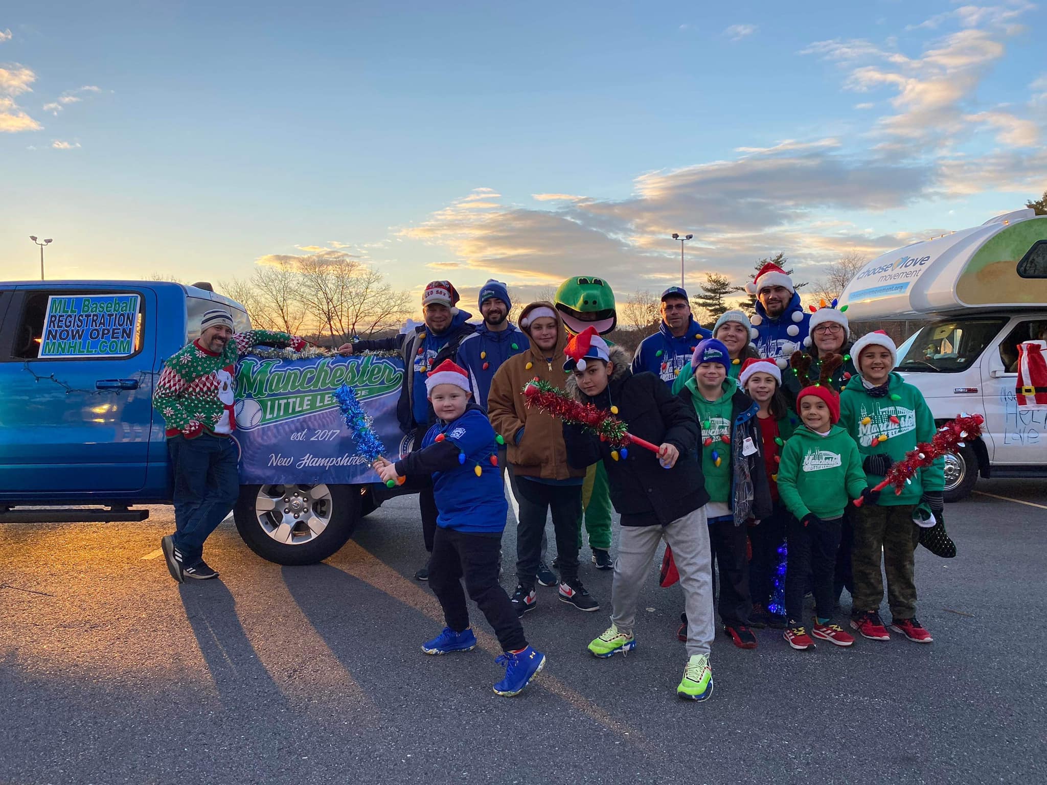 Held in tandem with the annual Santa Claus Shuffle 3K road race, the parade featured more than 44 floats and community groups which made their way from north Elm Street to the grand stand at Veterans Park, where emcees John Clayton of the Millyard Museum and Peter White, host of WMNH 95.3 FM morning radio show, provided color commentary.