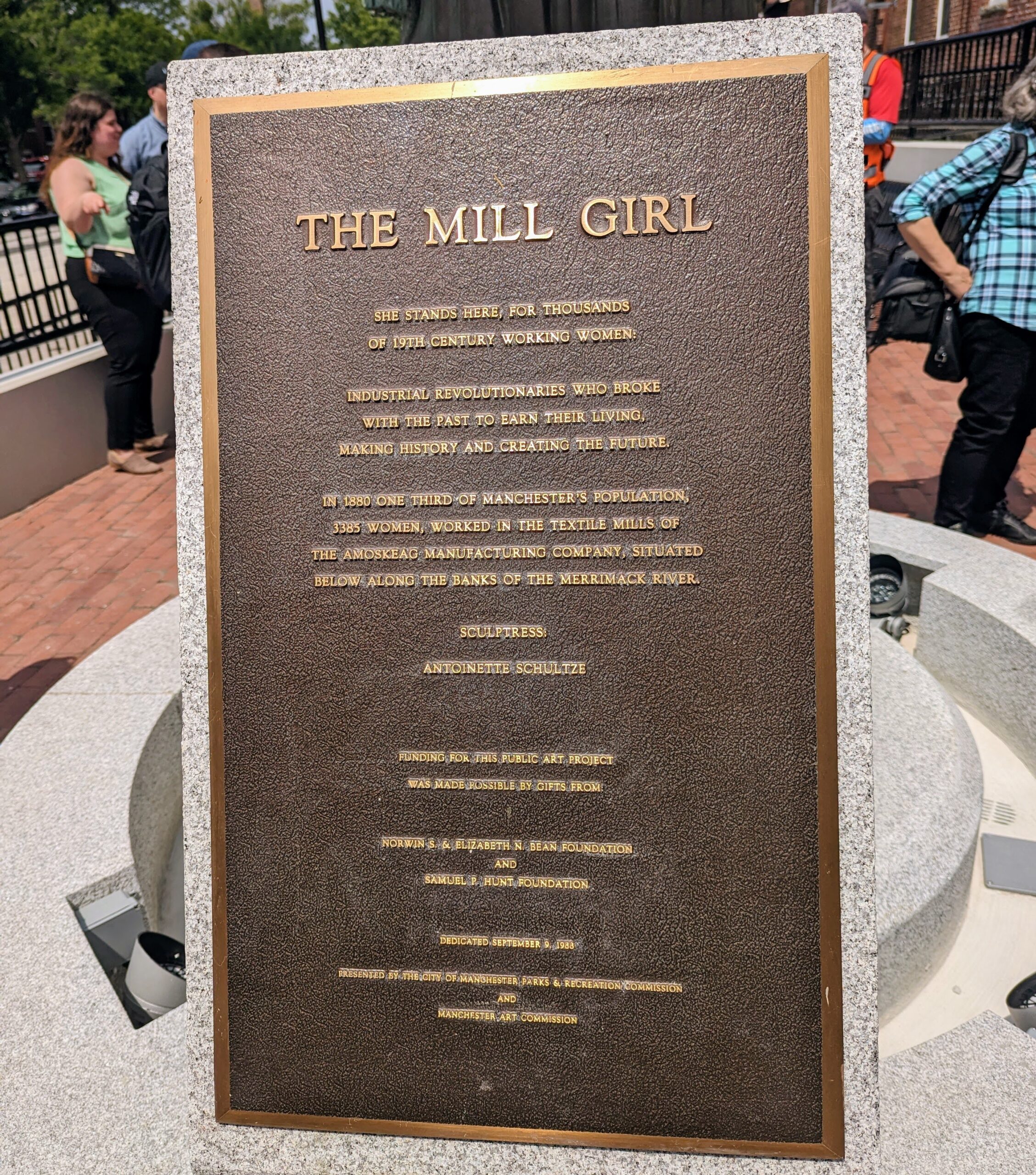 “The first time I saw her I was just walking through the mill yard and there she was,” said Nadeau, who later learned what the Mill Girl statue represented to the city and her situational significance. “It’s nice to see it all redone, and it’s nice that there’s a plaque. When I first saw it I had no idea why she was there.”