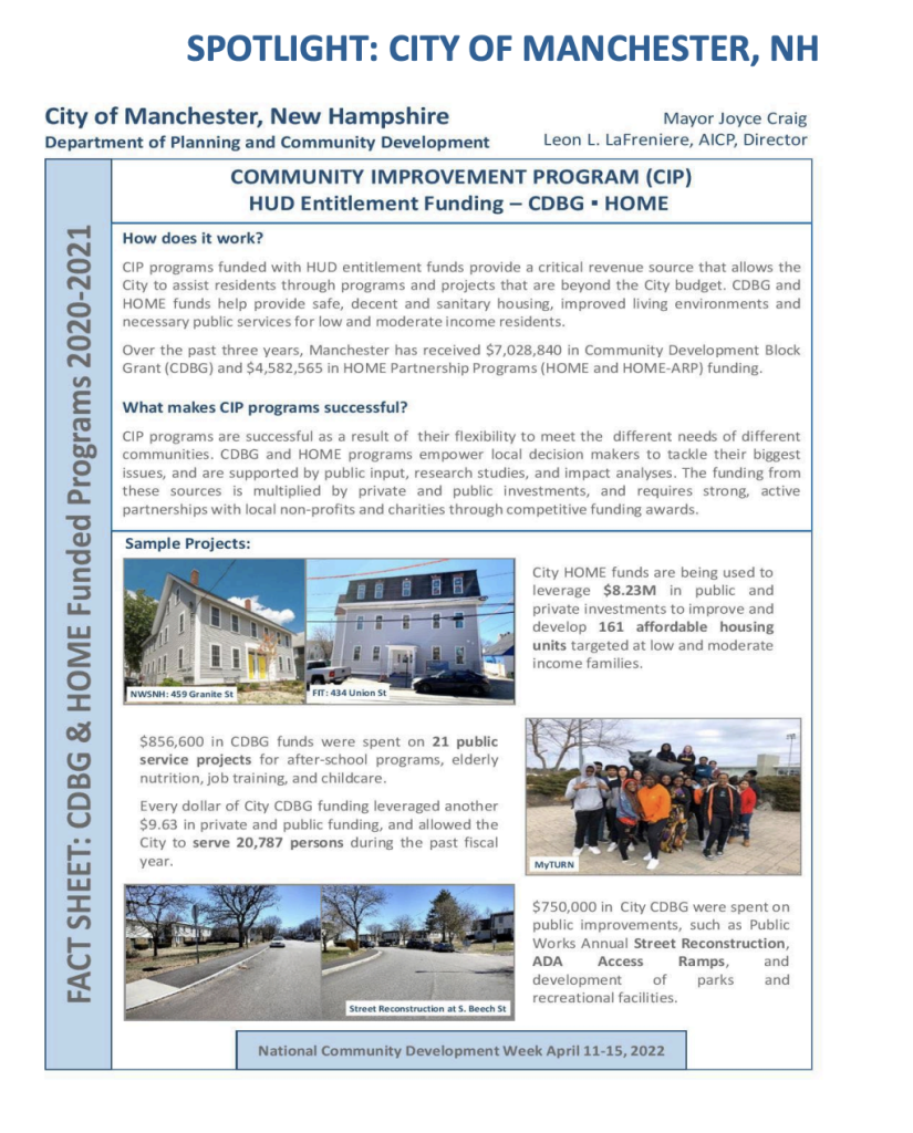 Last year, New Hampshire received $12,694,278 in CDBG money, which funded NH Community Development Finance Authority grants, as well as went directly to cities and towns for revitalization and economic development programs.