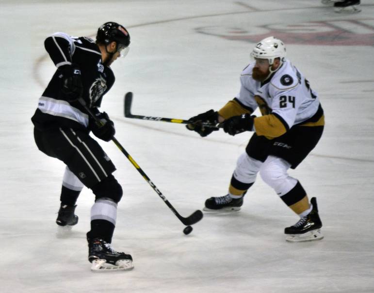 Georgio Estephan added a third Growlersโ power-play goal 5:25 into the third, but again the Monarchs responded quickly, as Mercier poked the puck just past the right post for his second tally of the night.