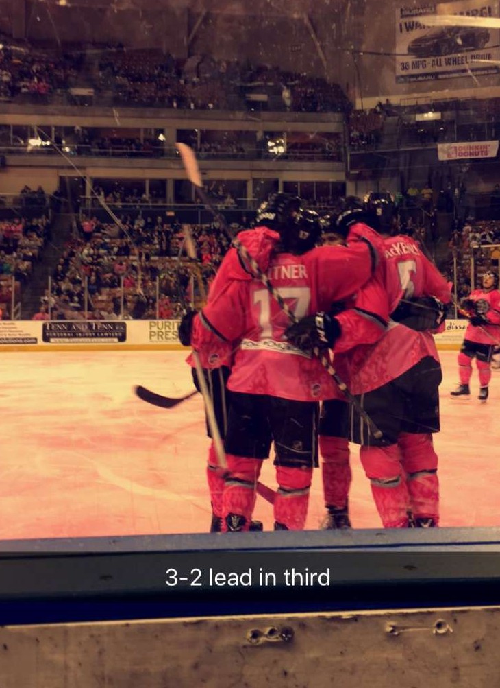 MANCHESTER, NH โ Last weekend’sย game at The Verizon between the Elmira Jackals and Manchester Monarchs brought a heartfelt presence. The Monarchs had the crowd at their backs with a 4-2 win. On behalf of the atmosphere, however it was the most alive Iโve seen it all year, and the annual Breast Cancer Awareness night showed it with each pink strand. The ice was lit up with an attention-grabbing pink.