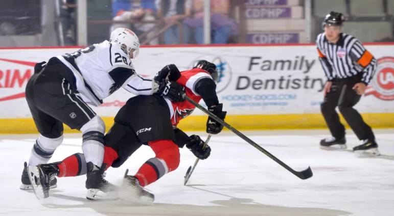 GLENS FALLS, N.Y. –ย The Manchester Monarchs return to New Hampshire with a commanding 2-0 series lead in the ECHL North Division Semifinals, convincingly defeating the Adirondack Thunder 6-1 on Saturday.