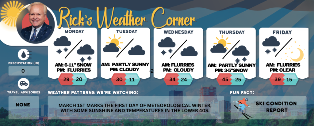 March 1st marks the first day of Meteorological Winter, with some sunshine and temperatures in the lower 40s.