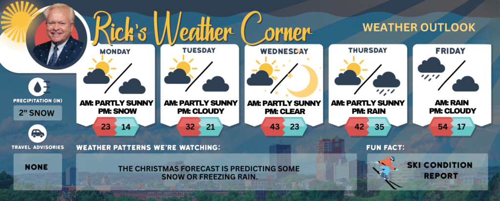 As the week goes on, the cold will ease up, with many places seeing temperatures rise above the usual 40-degree average from Wednesday to Friday. With the warmup, it could dash the hopes for many of a white Christmas as current snow cover on the ground may melt and not survive to Christmas Day. But some long-range models are calling for some snow on Christmas Day.