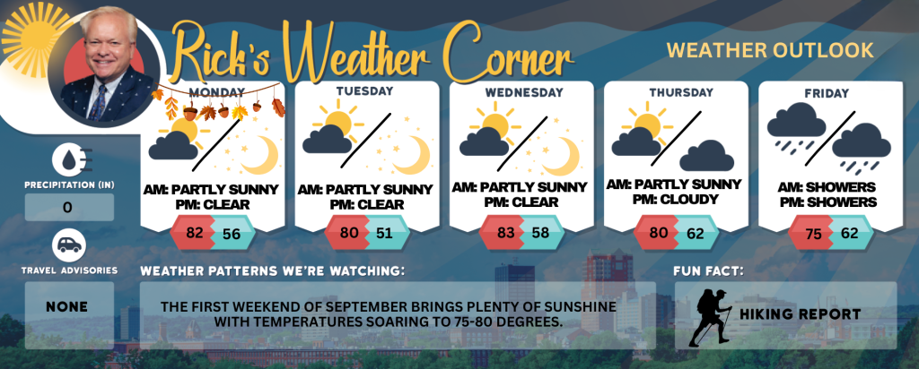 The first weekend of September brings plenty of sunshine with temperatures soaring to 75-80 degrees.