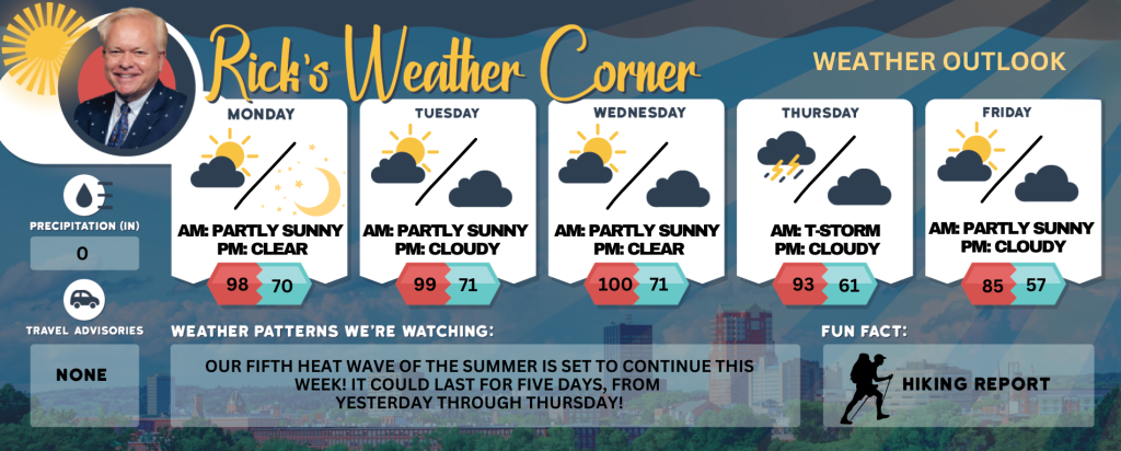 Our fifth heat wave of the summer is set to continue this week! It could last for five days, from yesterday through Thursday!