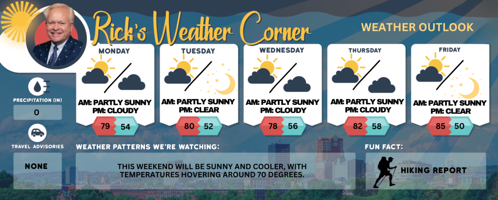 This weekend will be sunny and cooler, with temperatures hovering around 70 degrees.