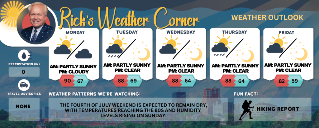 The Fourth of July weekend is expected to remain dry, with temperatures reaching the 80s and humidity levels rising on Sunday.