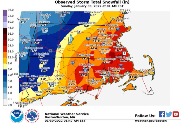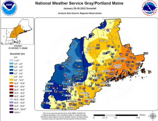 The storm Saturday tracked 40 miles farther out to sea, if not Southern New Hampshire would have gotten these numbers.