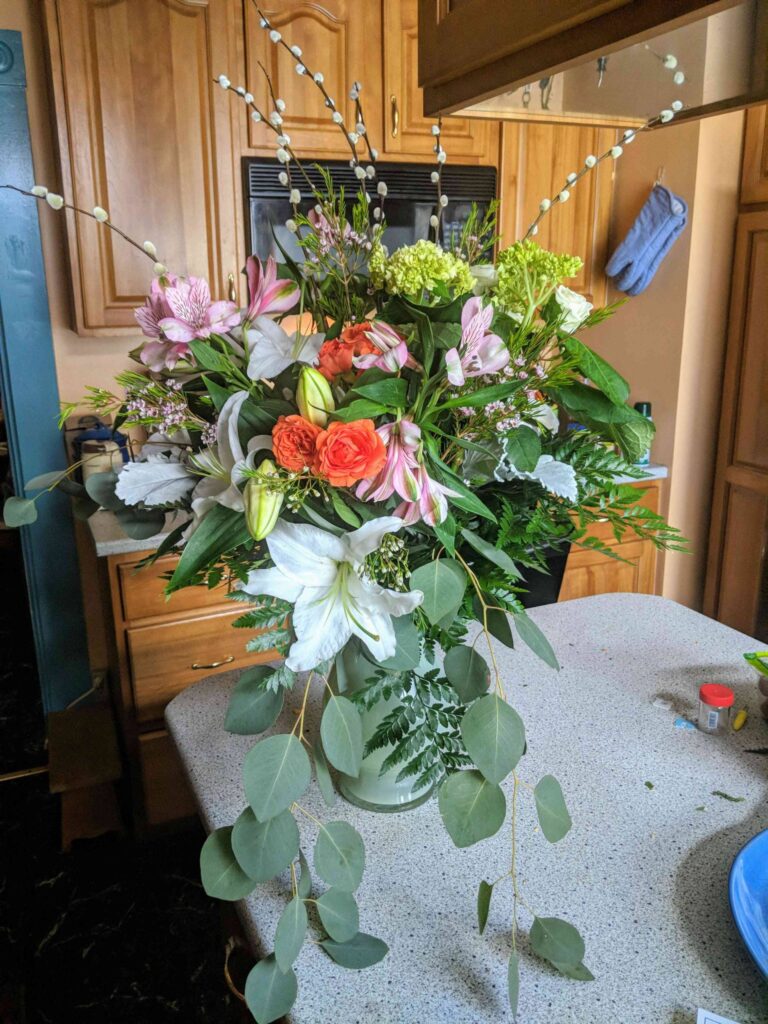 The enclosed card came from three of my four offspring and read, simply: “Though we can’t be here, these flowers should make it al little bit better. Thanks for showing us how to grow. We love and miss you!! hope to see you sooner than later. Bill, Jules and Neil.