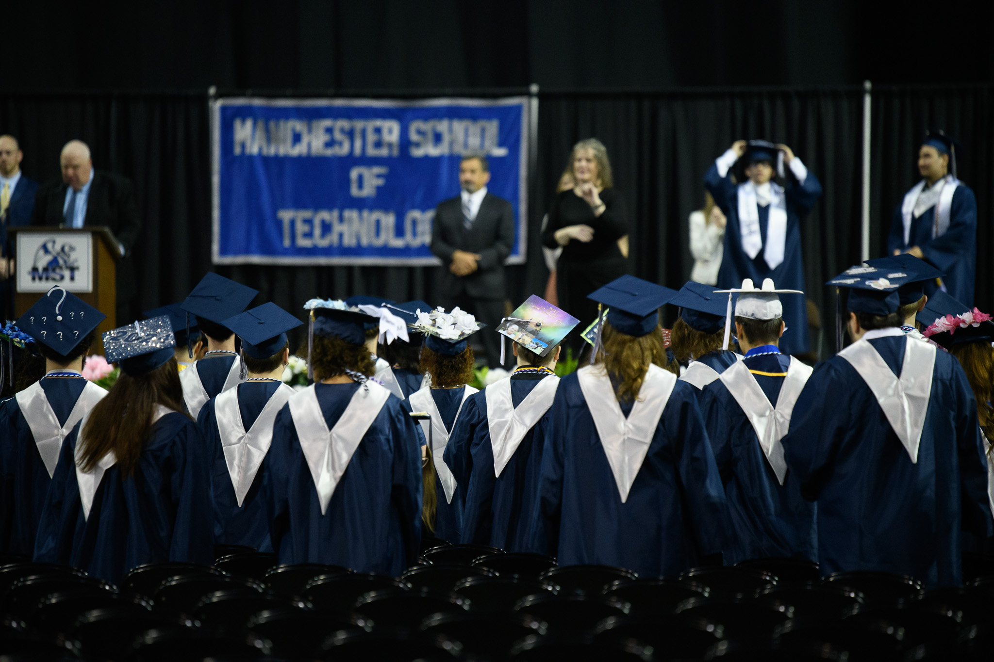 “At that time, some of you returned in person on alternating days while others stayed fully remote until May or even September 2021. Despite a rough and chaotic start to your first year of high school, you have succeeded and are here today to be recognized for your accomplishments and to receive your diploma as a graduate of the Manchester School of Technology. ”