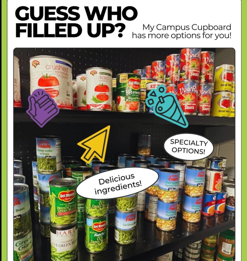The Cupboard also offers recipes available to encourage students to cook and make healthier choices. Since its revival after COVID-19, the cupboard constantly replenishes their products, either weekly or bi-weekly.