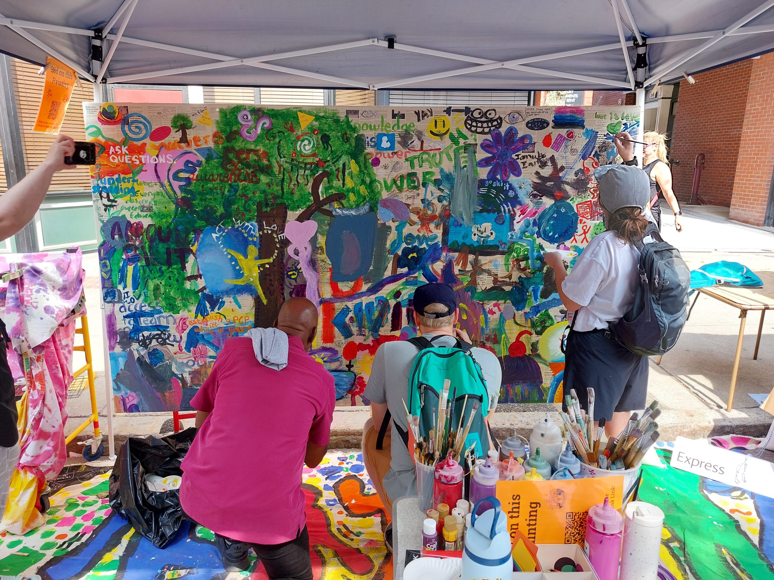 My other friend Amber Nicole made a big canvas for everyone in the event to paint and draw on. Many people came to see the painting and added to the work. My sister worked with one man who came. His name is Richard Haynes and he is very funny.ย