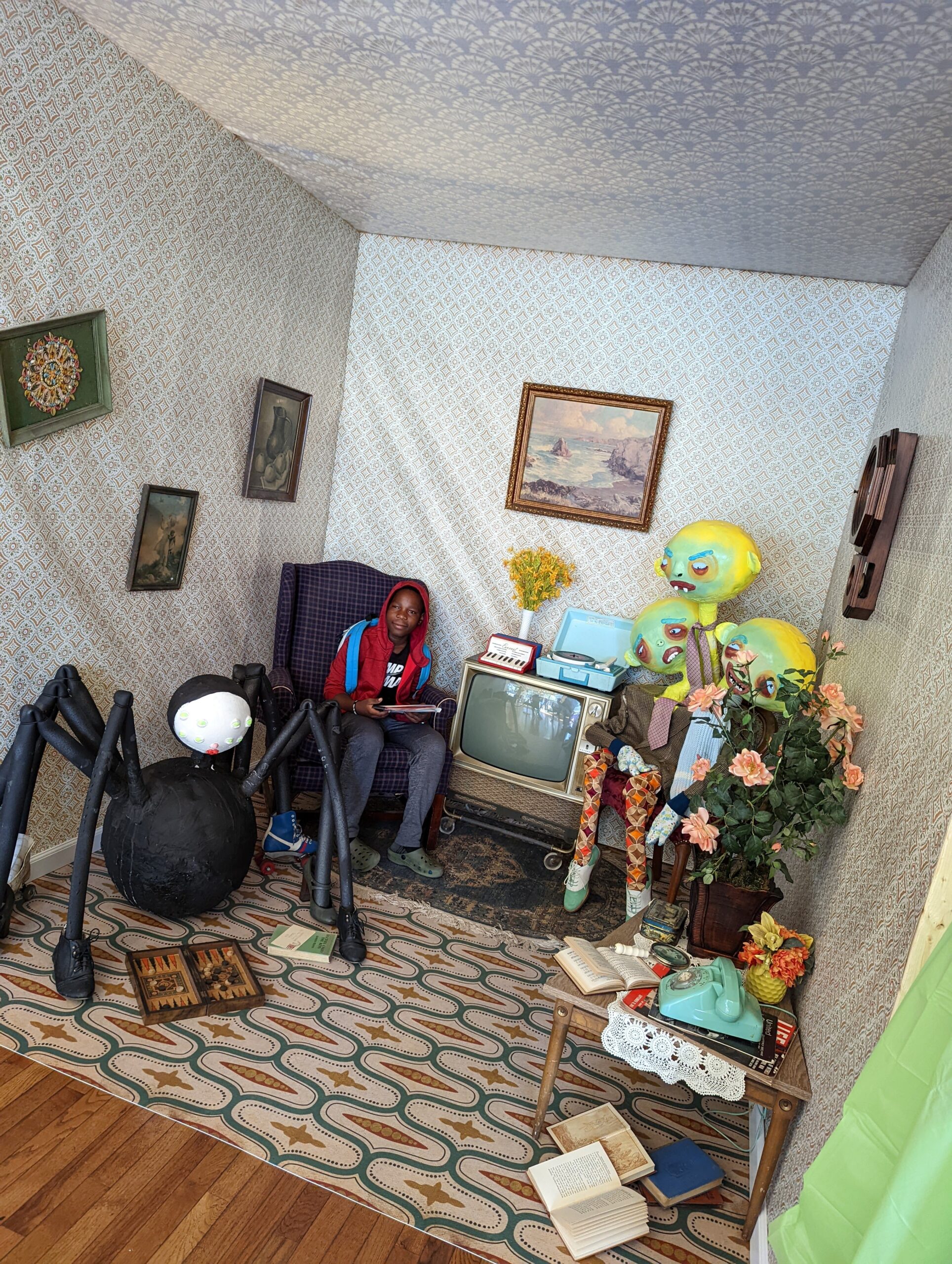 There were many cool people who I met. I saw a woman painting a picture of her children. She is going to be in a show at the Rochester Museum of Fine Arts. Her name is Michelle Peterson. This is a picture of her working.