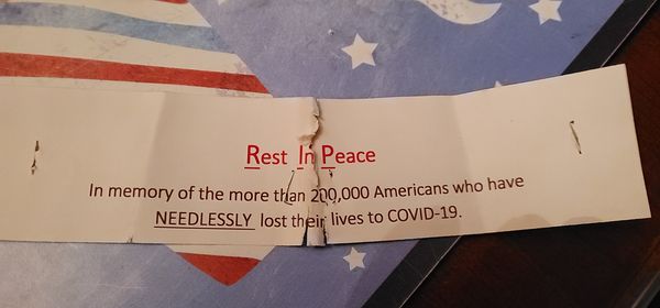 Local resident and Donald Trump supporter Joy Mallorie says she saw a series of the signs on Thursday along South Mammoth Road where Trump signs once were. Later, she found one of the signs on the corner of Brown Avenue and South Beech Street that had a message about COVID-19 on it.