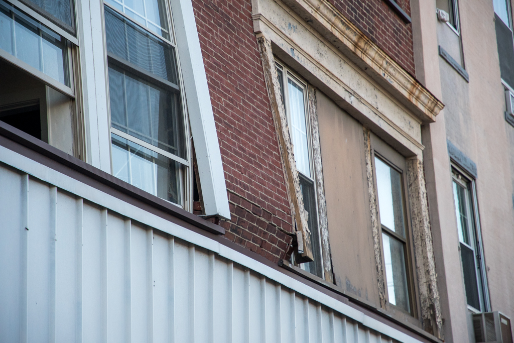 A man who lived in the apartment where the outside wall appeared to be significantly damaged told firefighters he had heard noises for a few days. The man was allowed to enter with an escort from a building department employee to retrieve his medicine.