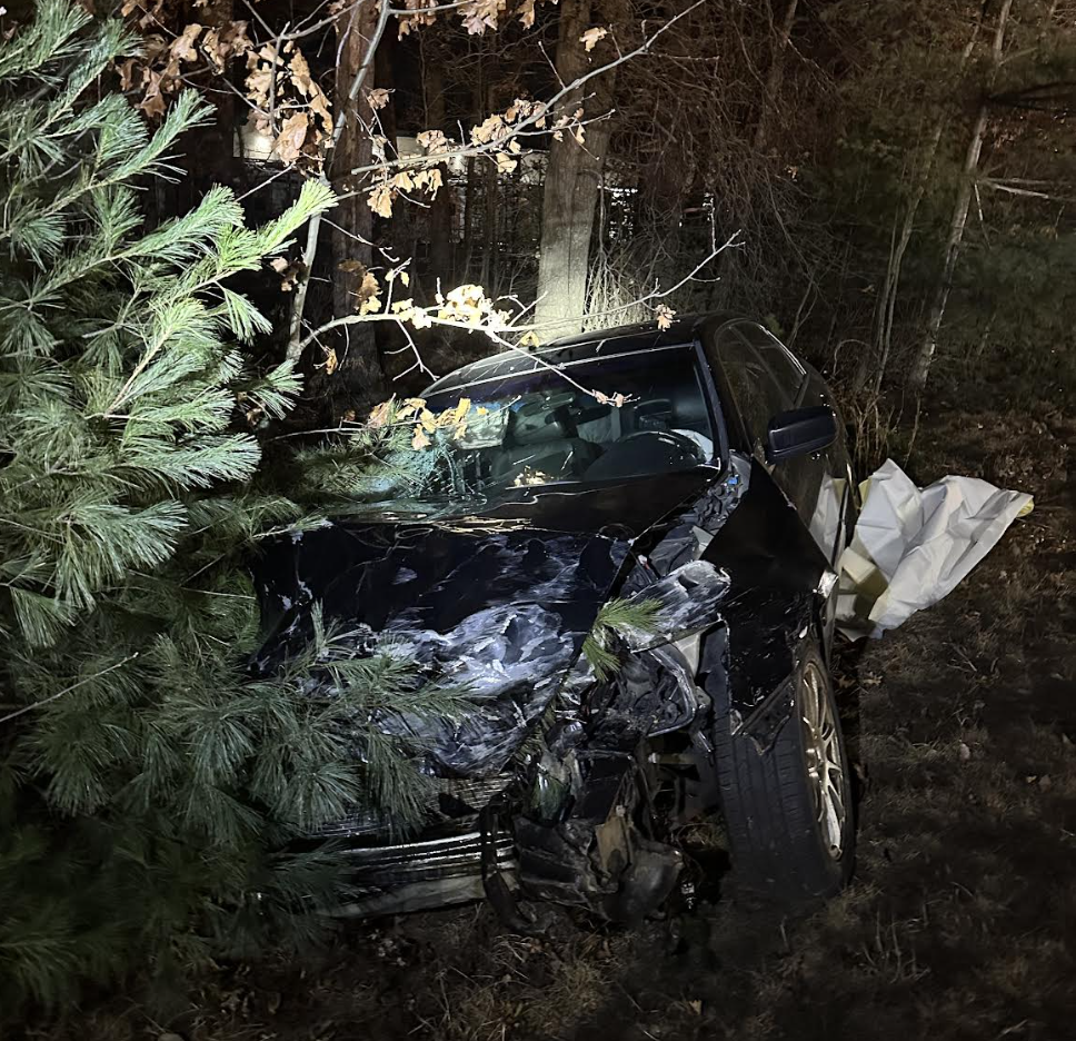 A preliminary investigation has determined that a Honda Accord, driven by Michael Ruiz, 19, of Nashua, struck the barrels and subsequently drove down an embankment to the edge of the woods. Ruiz suffered serious but non-life-threatening injuries. There were no other vehicles involved and no one else was hurt.