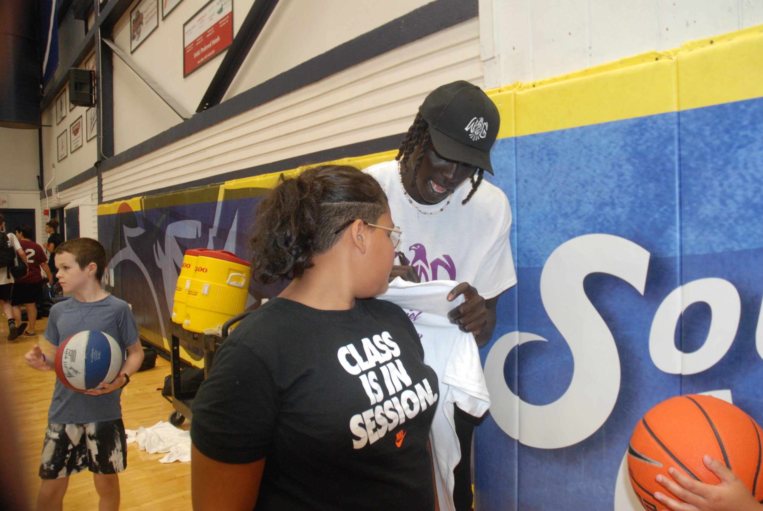 In addition to sharing his story of growing up in Manchester and playing for Trinity High School before moving on to the University of Kentucky and eventually the NBA, Gabriel spent much of the afternoon interacting with the 250 young players in attendance. He even challenged many of those same area youth to try to score on him.