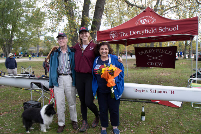 PEMBROKE, NH โ€“ Last week, the Derryfield School Crew Team honored former member and Olympian Regina Salmons by dedicating their new boat in her honor.