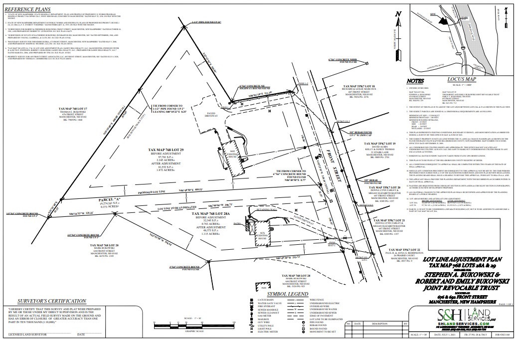 A subdivision application for a lot line adjustment between the two properties. S&H Land Services, LLC for Stephen A. Bukowski & Robert and Emily Bukowski Joint Revocable Trust.