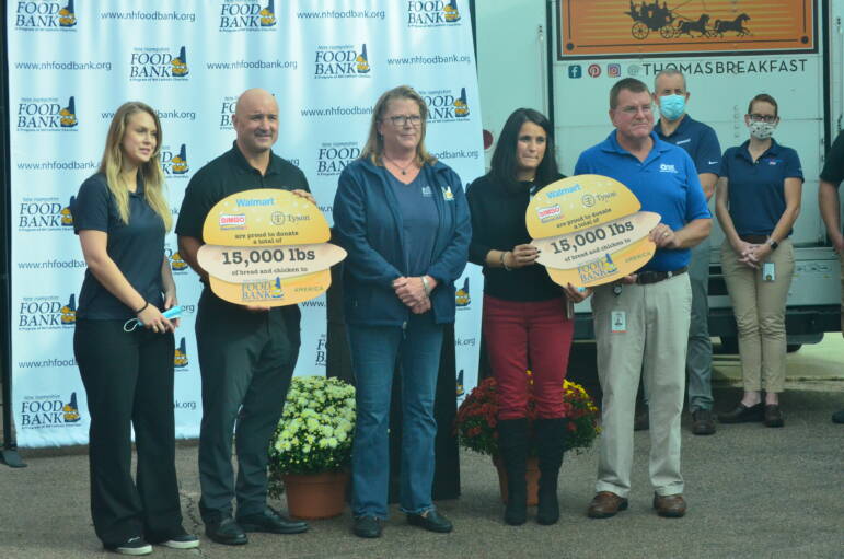 MANCHESTER, N.H. โ On Thursday, Bimbo Bakeries USA, Tyson Food and Walmart joined with Feeding America to donate 15,000 pounds of food to New Hampshire Food Bank.
