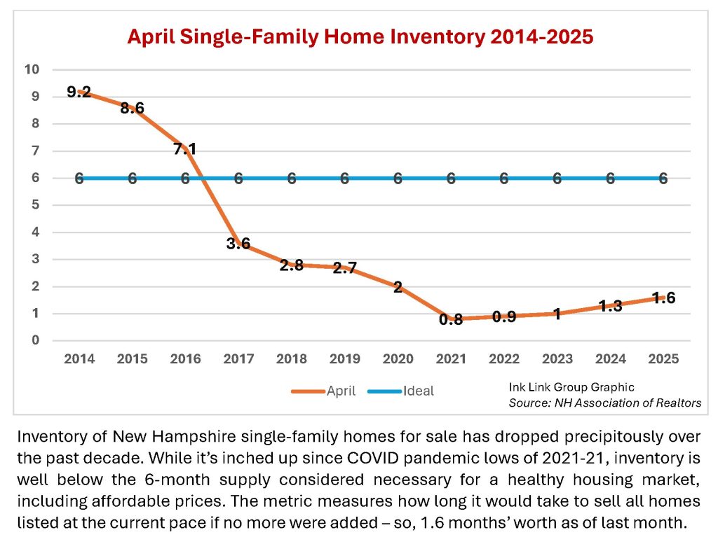 CONCORD, NH โ Sales were down slightly, but inventory inched up for single-family home sales in New Hampshire in April.