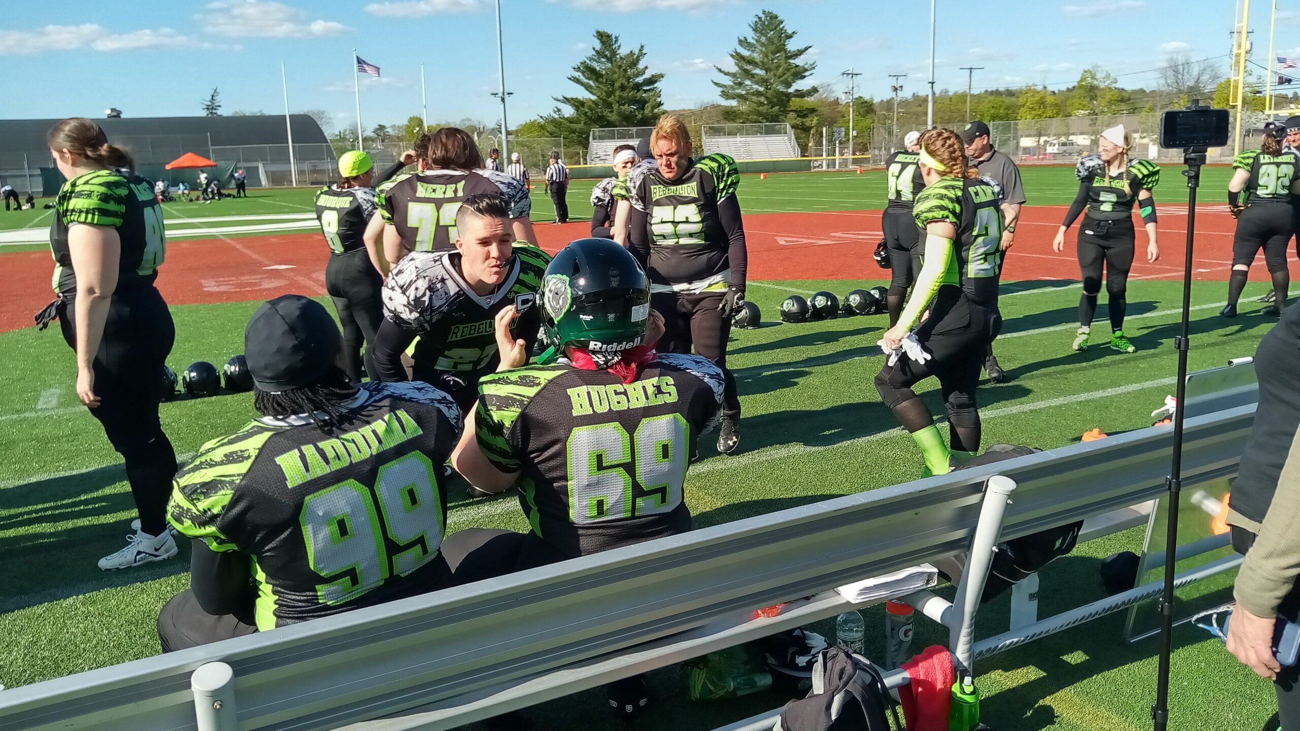Both teams, which are part of the Women’s Football Alliance, arrived early Saturday for a 5 p.m. game. The Hawks had traveled two and a half hours from their hometown of Waterbury, CT, to play in Saturday’s game. Many Rebellion players crossed the Massachusetts border north to play their first home game of the year.