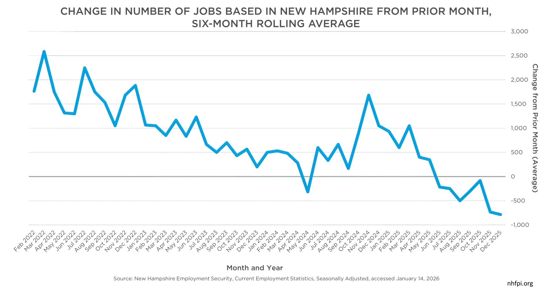 Ben Reynolds is a senior policy analyst at the New Hampshire Fiscal Policy Institute, a nonpartisan, independent research nonprofit that examines issues related to the state budget, the economy, health care, housing, and more. Read NHFPI’s full analysis, “New Hampshire’s Labor Market Slowed in 2025,” at nhfpi.org.