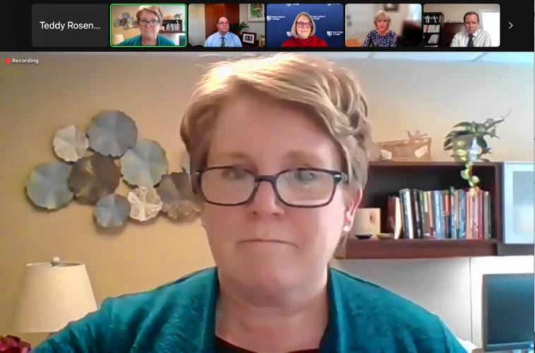 Erin Collins, RN, System Vice President of Nursing for Concord Hospital, speaks about a new nursing program for students at New England College. Screenshot/Teddy Rosenbluth