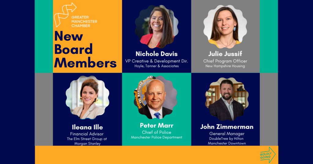 MANCHESTER, NH – The Greater Manchester Chamber (GMC) proudly announces the election of key officers to lead the Board of Directors, alongside the appointment of dynamic new board members. This marks a pivotal step in fortifying the Chamber’s mission to enhance economic prosperity and quality of life in Greater Manchester and beyond.