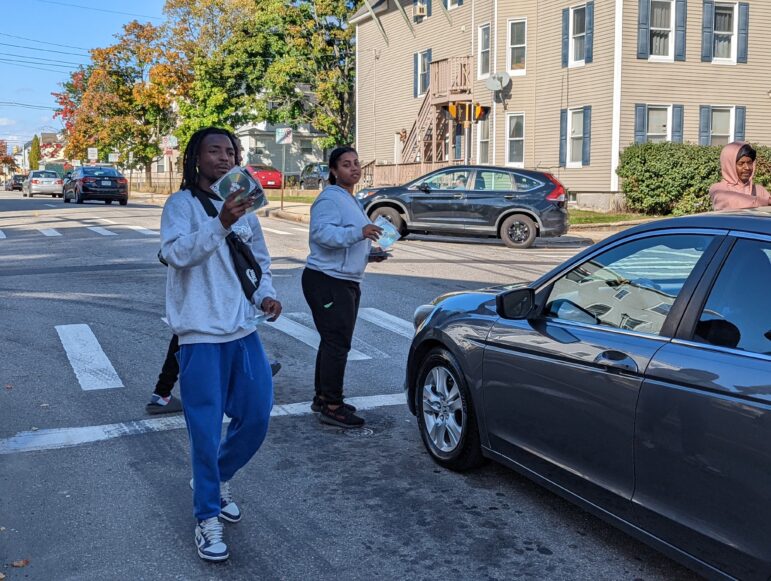 That was the cry motorists driving past the corner of Auburn and Maple Streets heard on Friday afternoon as they met a group of rappers from New York City that chose Manchester to sell their records face-to-face with people at the intersection.