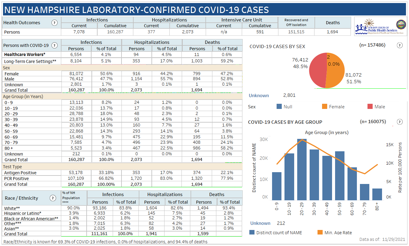 New Hampshire 2019 Novel Coronavirus (COVID-19) Summary Report (updated November 29, 2021, 9 a.m.)