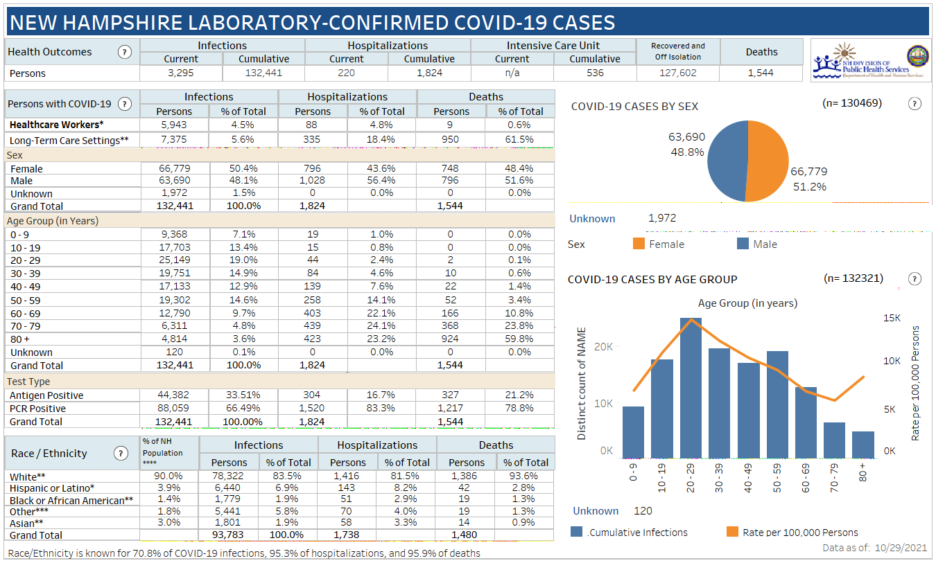 New Hampshire 2019 Novel Coronavirus (COVID-19) Summary Report (updated October 29, 2021, 9:00 AM)