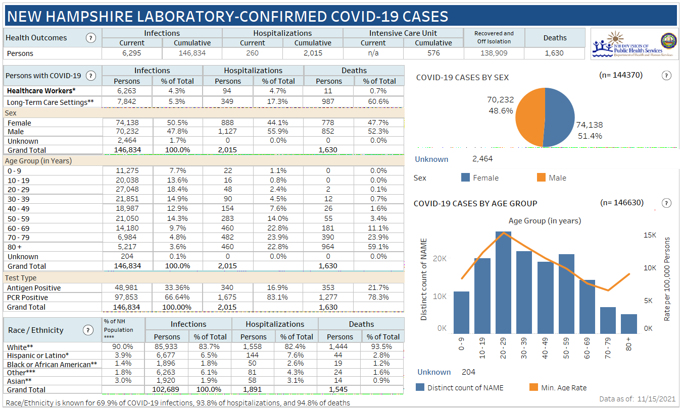 New Hampshire 2019 Novel Coronavirus (COVID-19) Summary Report (updated November 15, 2021, 9 a.m.)