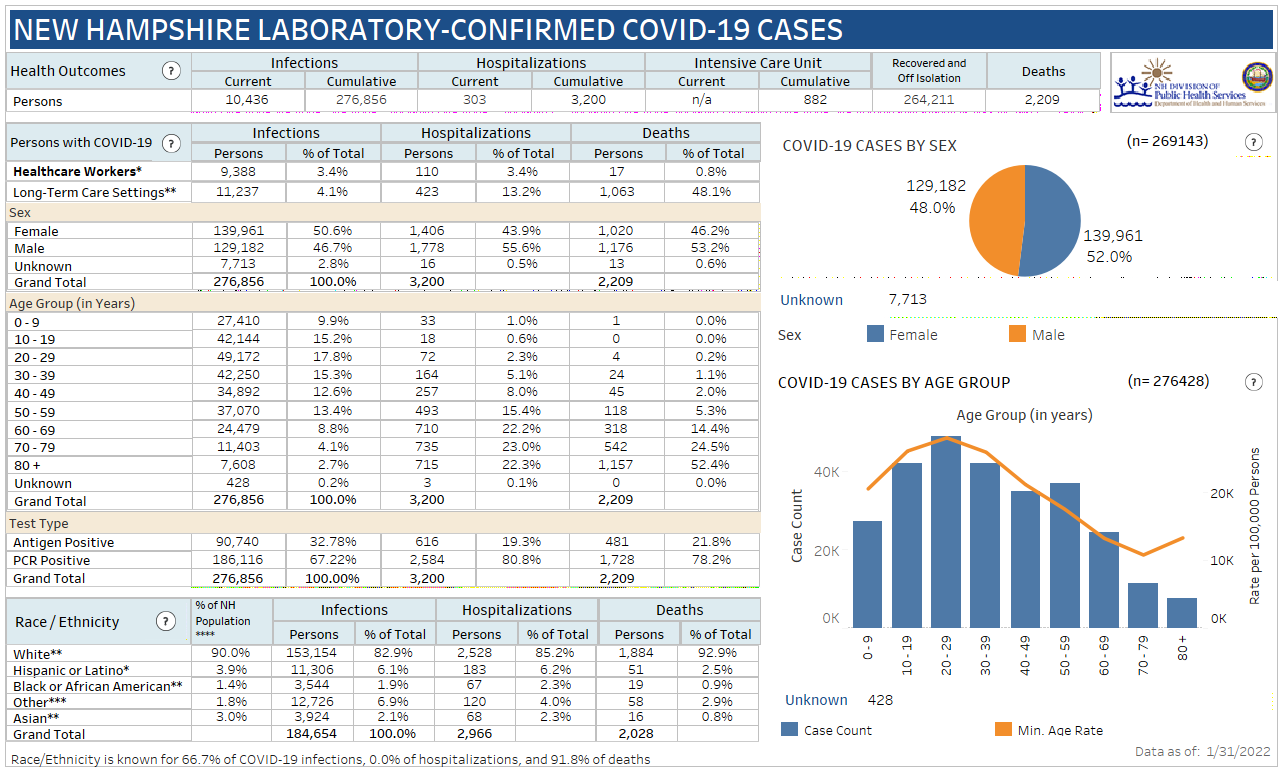New Hampshire 2019 Novel Coronavirus (COVID-19) Summary Report (updated January 31, 2022, 9 a.m.)
