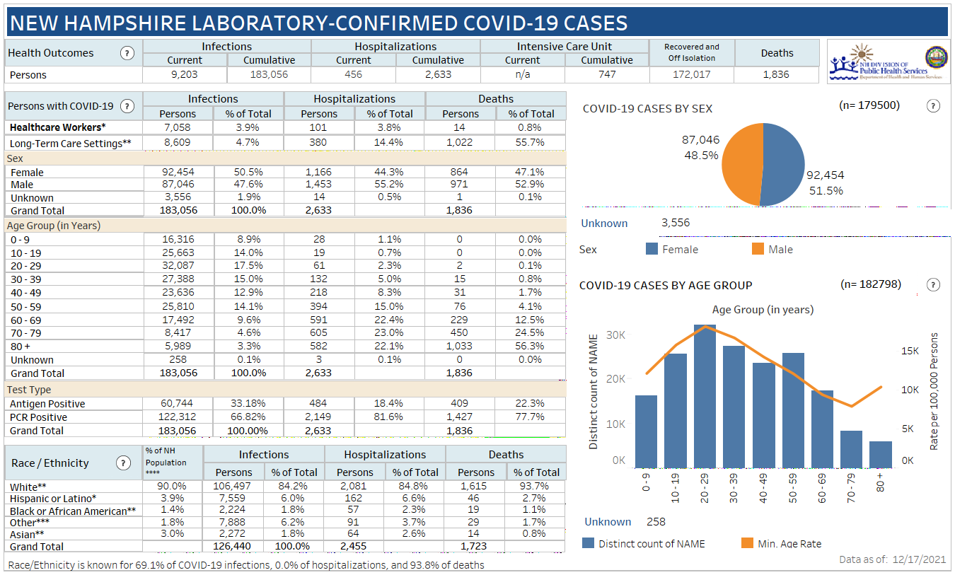New Hampshire 2019 Novel Coronavirus (COVID-19) Summary Report (updated December 20, 2021, 9 a.m.)