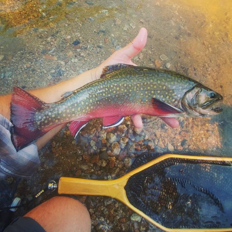 In theย Central Region, I received a nice report from an angler doing well catching both wild and stocked trout in the White Mountain area. Heโs been having luck fly fishing using a hopper pattern or any other terrestrial fly. The fish aren’t too picky right now, especially the wild fish, which are very aggressive. Despite their general small size (4-6″) there are larger brook trout that fell for a yellow hopper fly (see photo right by S. Flagg). If anglers are willing to hike into some of these back country streams, they may be rewarded with a similar fish.
