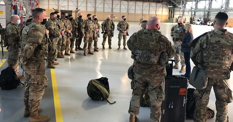 WASHINGTON, DC โ€“ U.S. Senator Maggie Hassan greeted members of the New Hampshire Army and Air National Guard upon their arrival at Joint Base Andrews in Maryland Saturday ahead of President-elect Joe Bidenโ€™s inauguration next week. Approximately 50 members of the New Hampshire Army and Air National Guard are supporting the security missionย within D.C. ahead of and during the inauguration.