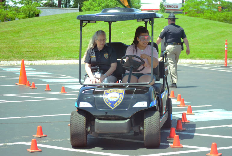 In addition to learning about law enforcement techniques aimed at stopping intoxicated driving, students also got a chance to participate in a “virtual impaired driving simulator.” Students also got a chance to try out real-life impaired driving simulation using specialized googles simulating a 1.0 blood alcohol content level and a specialized golf cart on a small course in the arena’s parking lot.