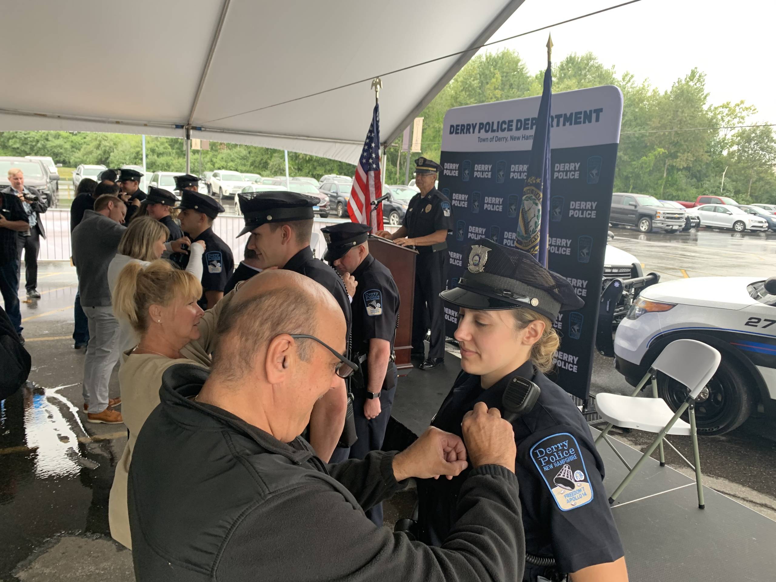 In Derry, where they ceremonially badged eight new officers last Thursday in a tent outside the Tupelo Music Hall, the department streamlined their hiring process in September 2019.