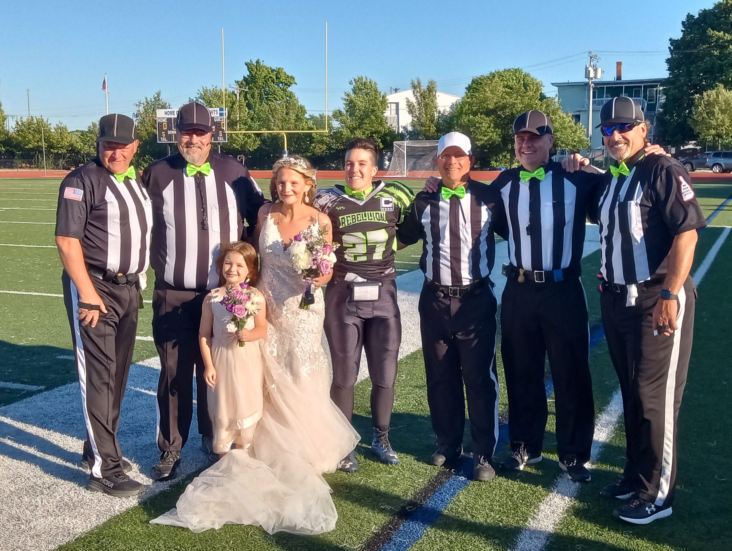 MANCHESTER, NH โ In an event that had been a year in planning, All-American running back for the New Hampshire Rebellion Selina Collins married Britnee Feldman, the team’s Game Day Coordinator and Player Representative. In 2023, Feldman played for the team as a wide receiver.