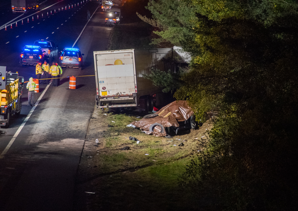 The crash occurred about 12:33 a.m. between the cruiser and a tractor-trailer near the northbound exit 5 at Portsmouth.