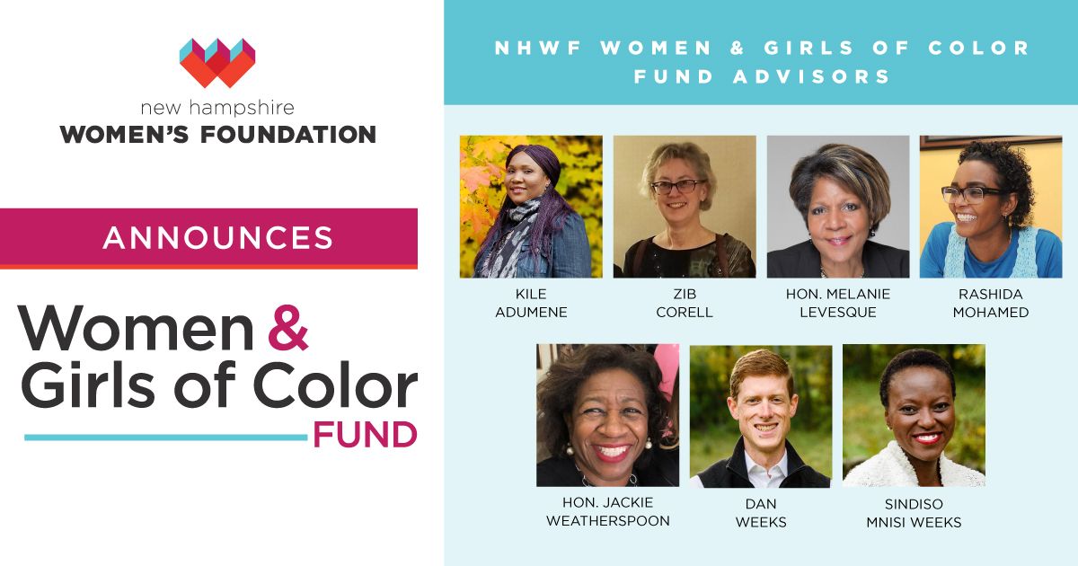 According to the Women’s Foundation website, the Women and Girls of Color Fund aims “to reverse the historic and persistent underinvestment in women and girls of color. The Fund augments our existing grantmaking and will provide low-barrier, faster turnaround grants to projects led by and serving women and girls of color in New Hampshire.” Advisors to the Fund are: Kile Adumene, Zib Corell, the Honorable Melanie Levesque, Rashida Mohamed, The Honorable Jackie Weatherspoon, Dan Weeks and Sindiso Mnisi Weeks.