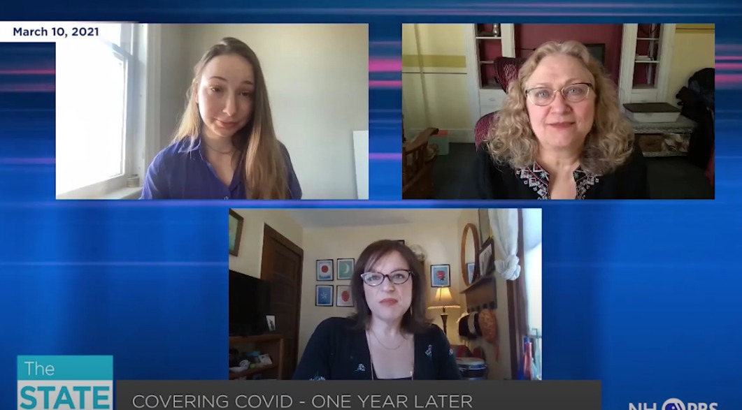CONCORD, NH – It’s been one year since the COVID-19 pandemic changed life as we know it. Along with many others, New Hampshire journalists have been on the frontlines covering COVID. This week, The State We’re In host Melanie Plenda speaks with Carol Robidoux, founder and publisher of the Manchester Ink Link, Jack Rooney, education reporter at the Keene Sentinel, Teddy Rosenbluth, health reporter at the Concord Monitor, and Bob Sanders at New Hampshire Business Review about the unprecedented year that passed and the stories we’ll likely cover in the year ahead.